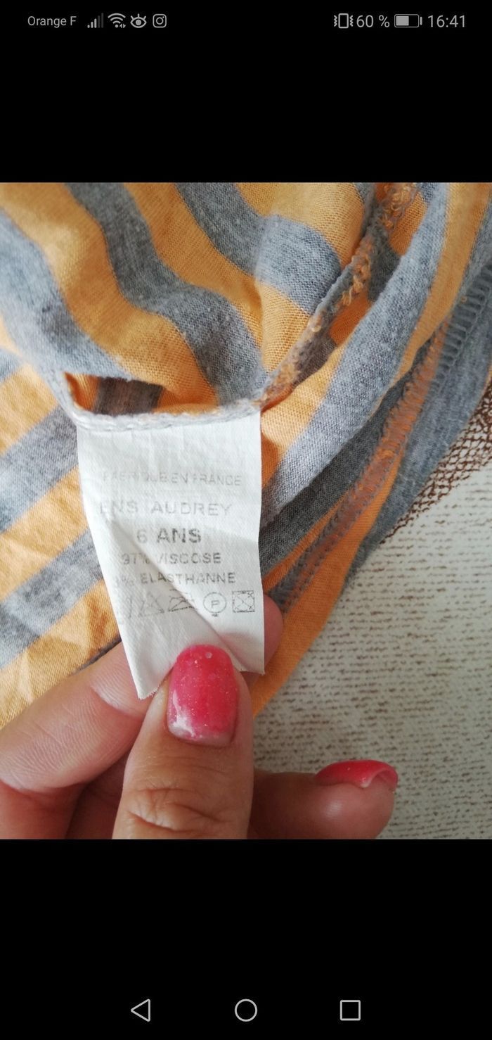 Tee shirt 6 ans manches courtes rayé gris/orange