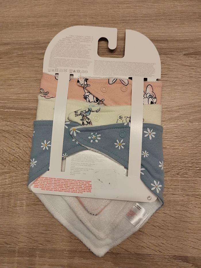 3 Bavoirs Disney Daysie neufs. Réglable avec 2 boutons pressions.