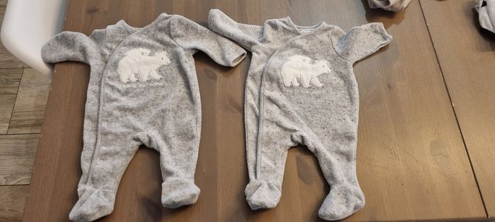 Pyjama velour pratique ouverture par devant ! Je conseille pour facilité avec les tout petits. Très peu porté!