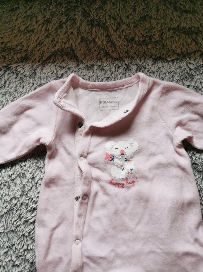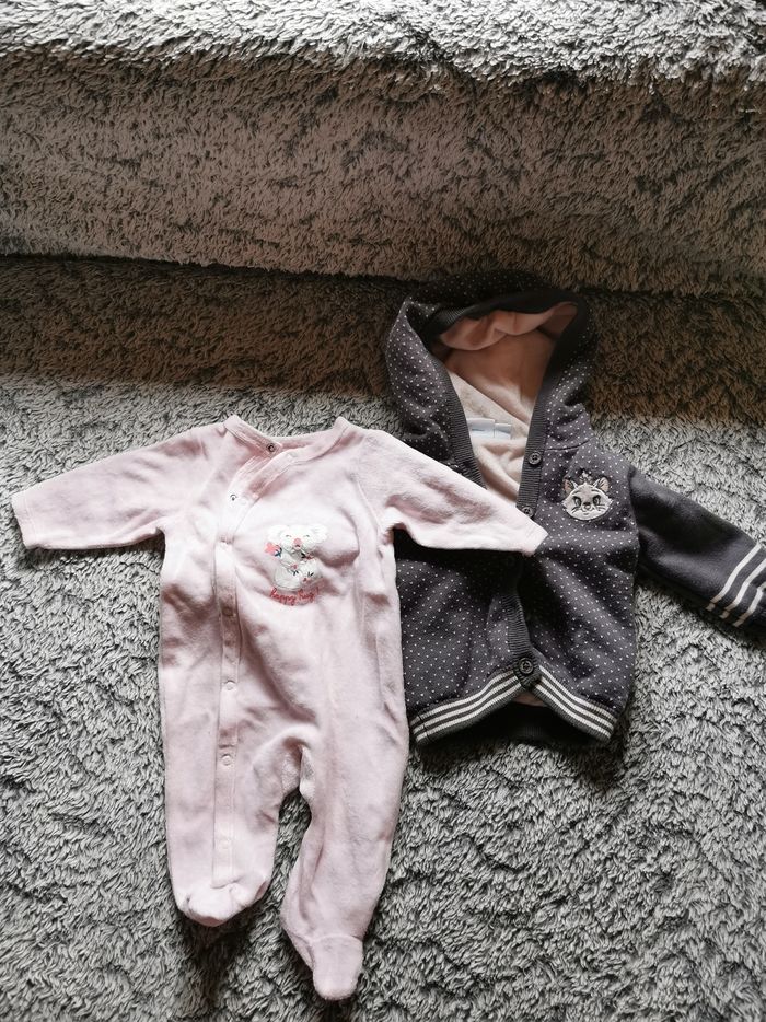 A vendre lot vêtements bébé fille, en bon état. Un pyjama de la marque aubert taille 1 mois et la veste disney fourré à l'intérieur, taille 3 mois de la marque orchestra.