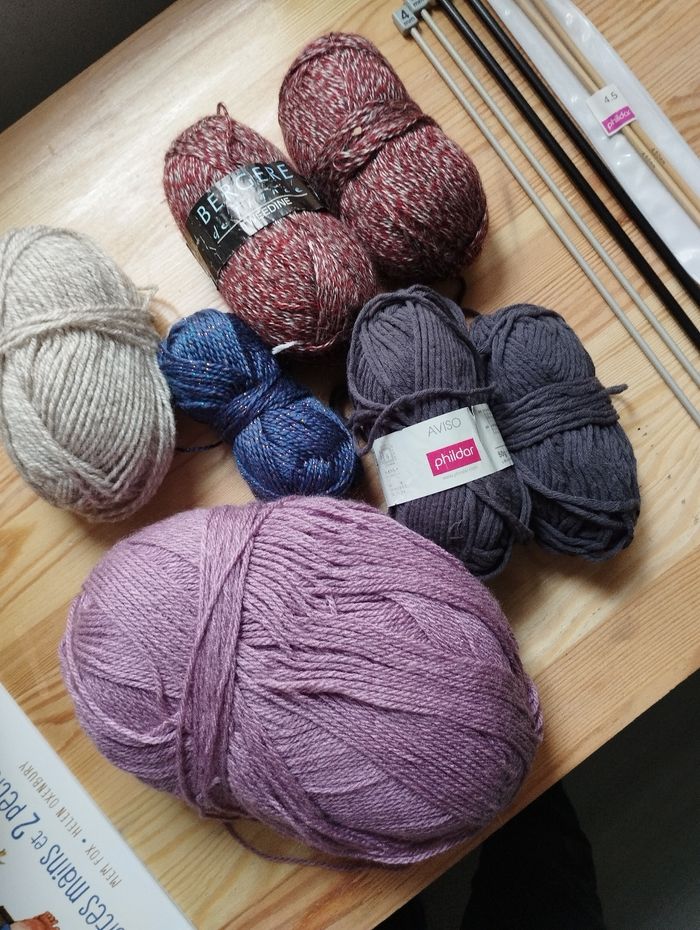 Je vends trois lots d'aiguilles à tricoter, de différentes tailles. Ainsi que plusieurs pelotes de laine.