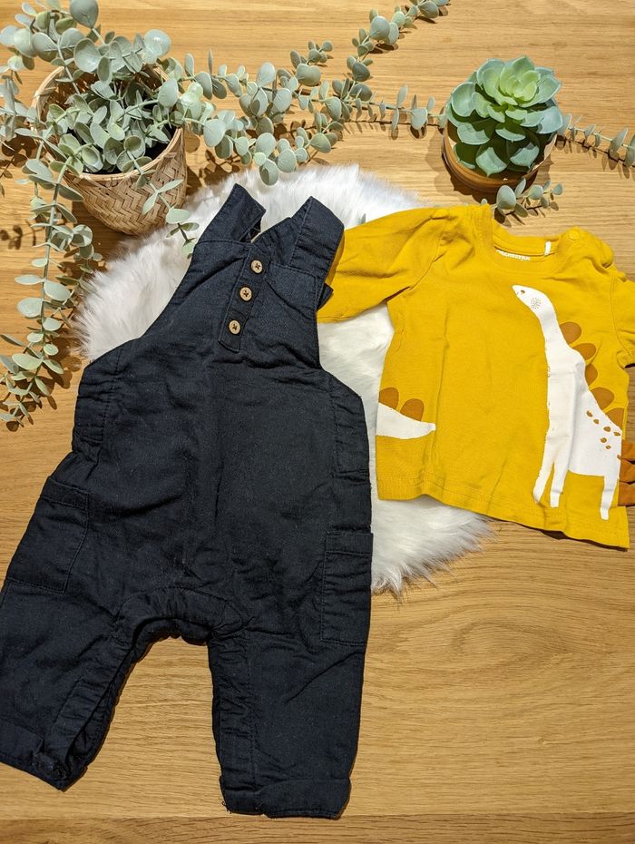 Ensemble bébé Salopette et tee shirt Mi saison. Excellent état