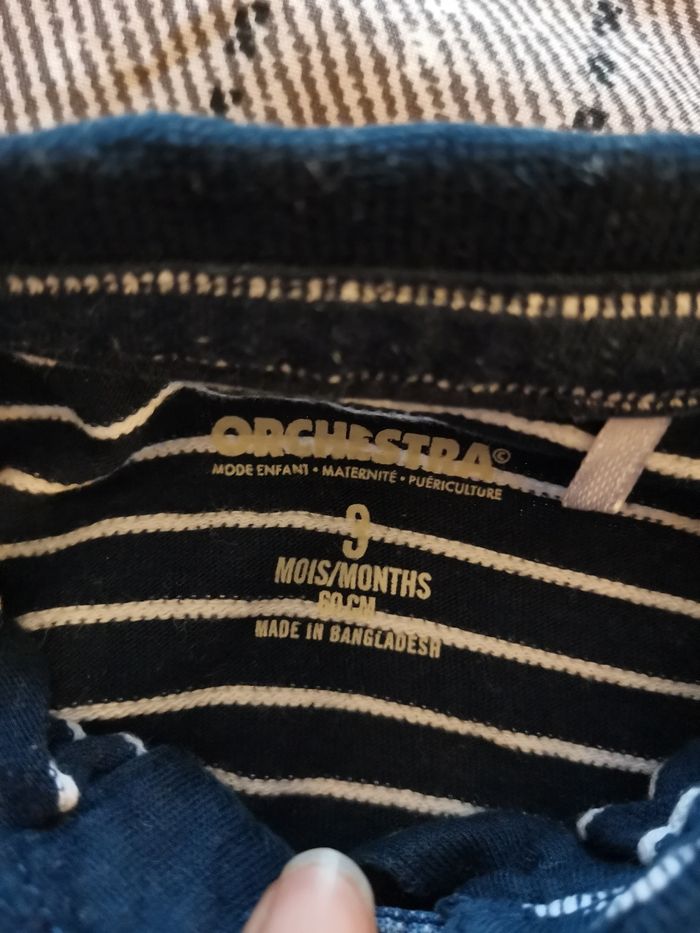 Jolie petite salopette en jean qui fut mon coup de cœur malheureusement porté 1 ou 2 fois (il a grandi trop vite 😢) que je cède accompagné de son polo rayé.