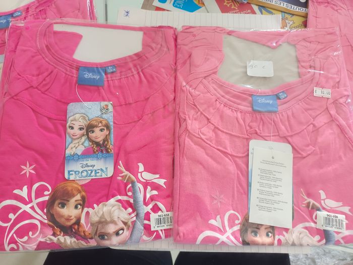Bonjour Je vends des t-shirt reine des neiges à manches courtes pour l'été idéal C'est du 100 % coton De sortes sont disponibles Rose foncé il y a 5ans/7ans/8ans Rose clair il y a 5ans/8ans/9ans Ils sont vendus à 7 € l'unité