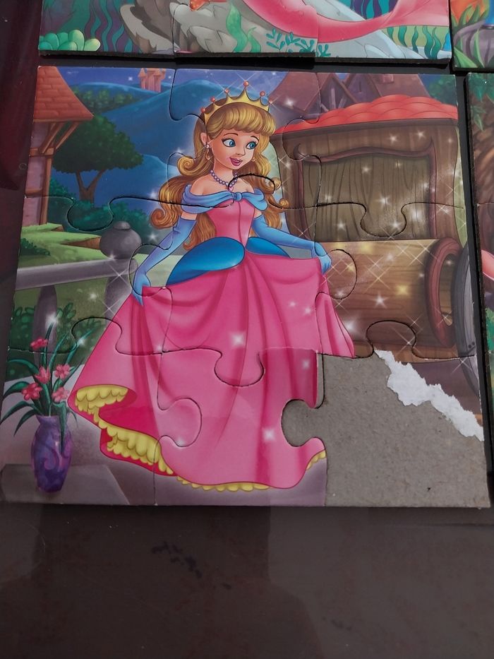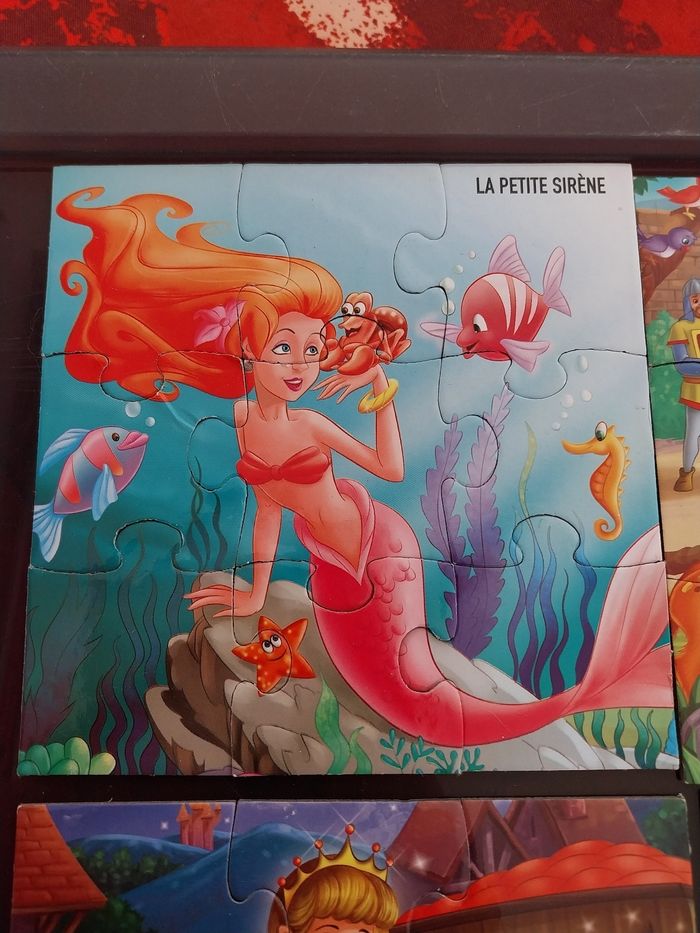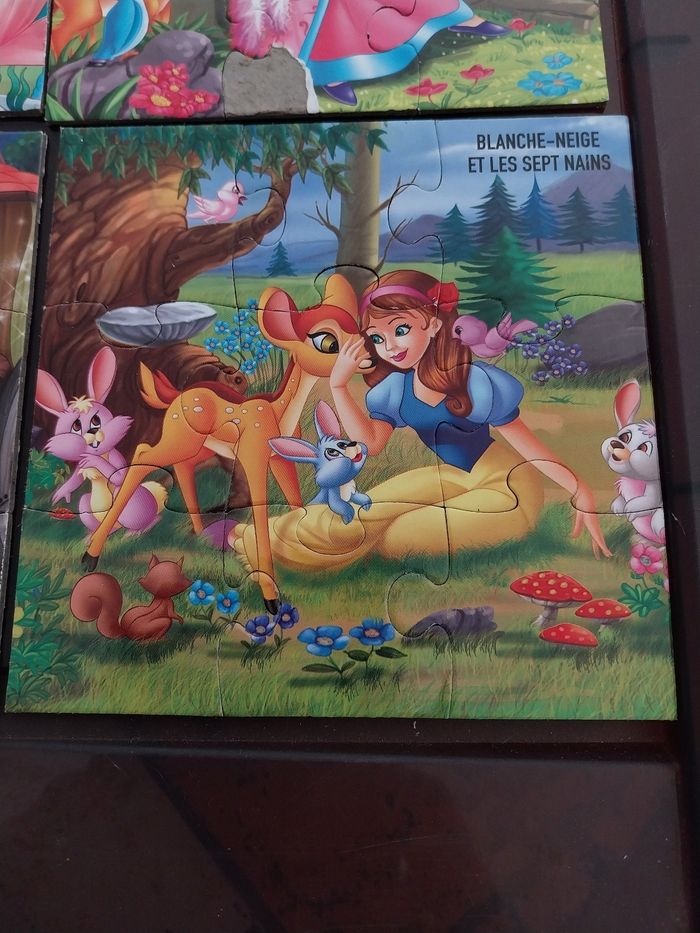 4 puzzles de 9 pièces. complet. 2 pièces dechirees sur le dessus.