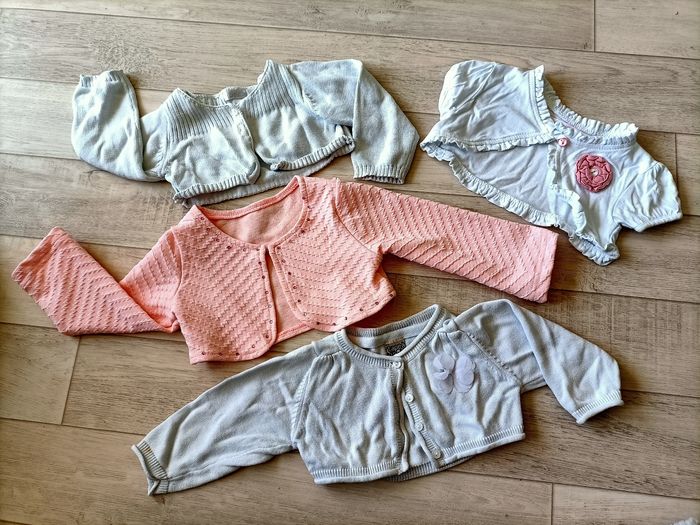 Lot de 4 caches-coeur dont 1 manches courtes Idéal pour la mi saison Taille 6 mois Bon état