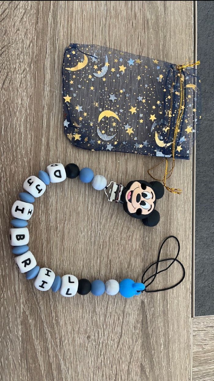 Attache tétine personnalisé en silicone ou en bois au souhait de l’acheteur . Personnalisable au choix de l’acheteur que ce soit la couleur comme le prénom ou le thème . Le fil est doublé pour plus de sécurité tout le long de l’attache tétine. N’hésitez pas à me demander et regarder mon dressing. Une photo vous sera envoyée avant l’expédition pour vous ayez un aperçu du rendu. Tous les produits sont réalisés avec du materiel spécial conçu aux bébés , enfants.