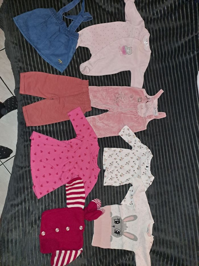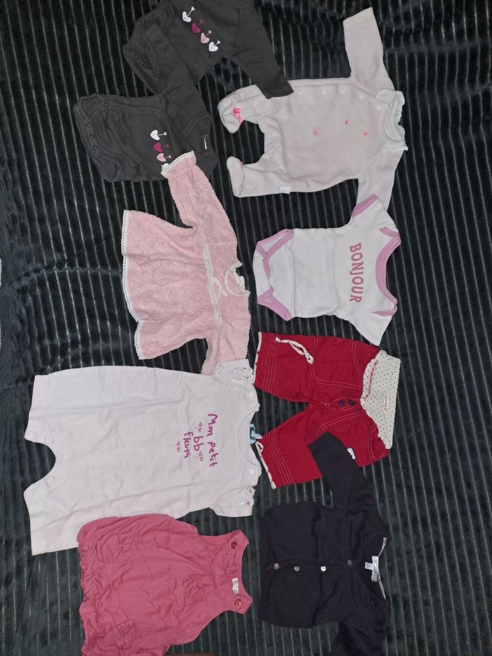 Vends plusieurs habits FILLE de la naissance à 3 mois. Le prix dépends du nombre d'articles qui vous intéressent. Je peut également faire des lots avec un prix adapté évidemment. Merci. 😊