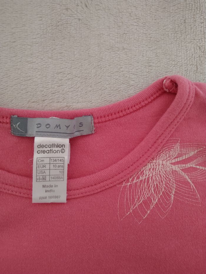 T-shirt à manches longues Marque Domyos, Decathlon Taille 10 ans, 134-145 cm • Coloris rose • Imprimé en texture au col • Stretch • Couture enlevée sur le bas En très bon état #evelyne_filles_10ans #evelyne_filles