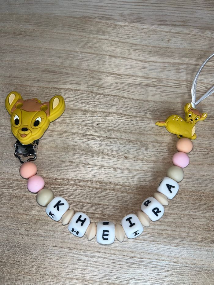 Attache tétine personnalisé en silicone ou en bois au souhait de l’acheteur . Personnalisable au choix de l’acheteur que ce soit la couleur comme le prénom ou le thème . Le fil est doublé pour plus de sécurité tout le long de l’attache tétine. N’hésitez pas à me demander et regarder mon dressing. Une photo vous sera envoyée avant l’expédition pour vous ayez un aperçu du rendu. Tous les produits sont réalisés avec du materiel spécial conçu aux bébés , enfants.