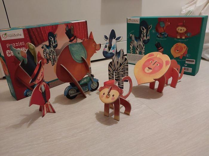 Pour se créer des histoires. Puzzle en 3 dimensions, seul défaut, la queue du petit singe qui a était pliée mais tient encore très bien ( voir photo 3)