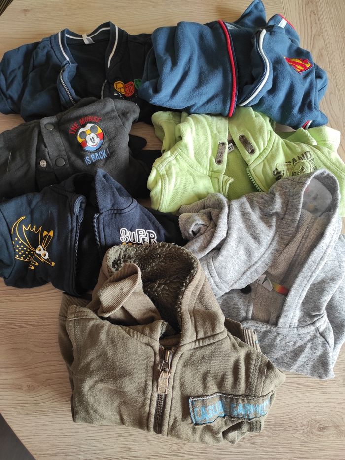Lot de vestes zippées 18 mois Dont une en manches courtes (1e en haut à gauche) le restant en maches longues. Différentes épaisseurs.