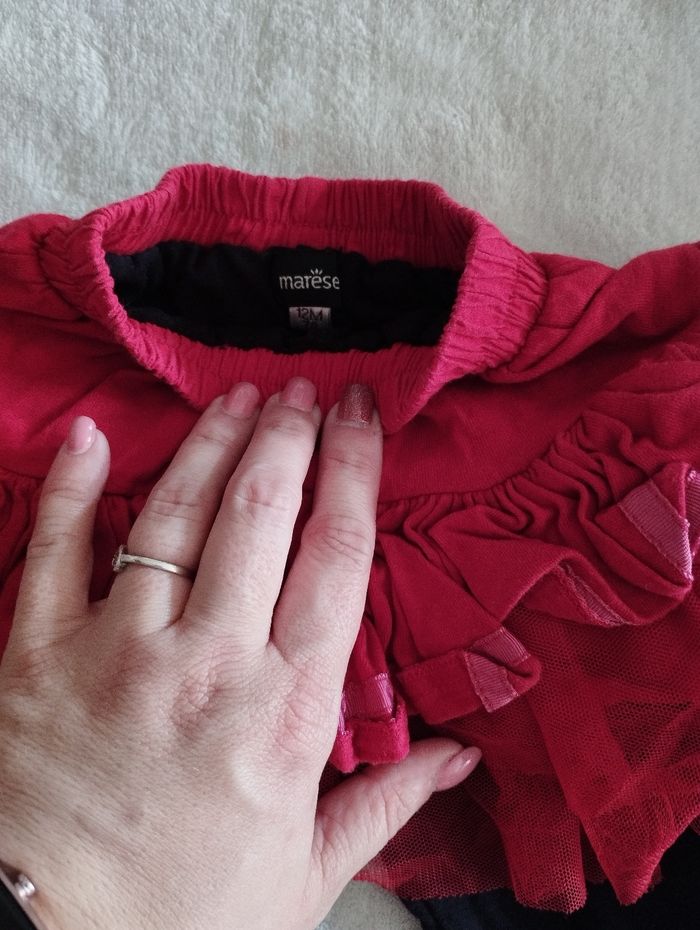 Jupe de chez Marèse 12 Mois Rouge et noir avec legging intégré
