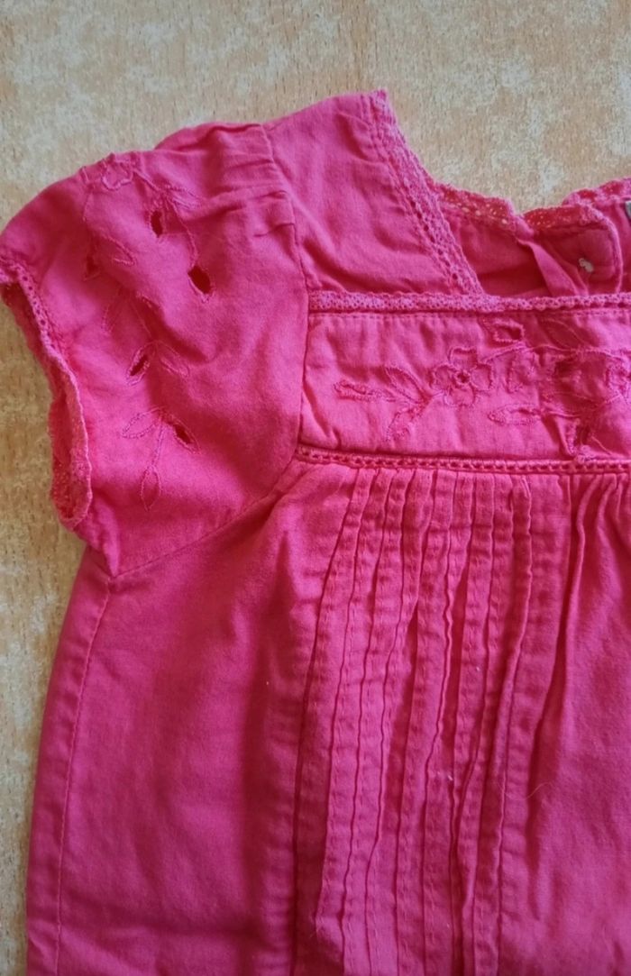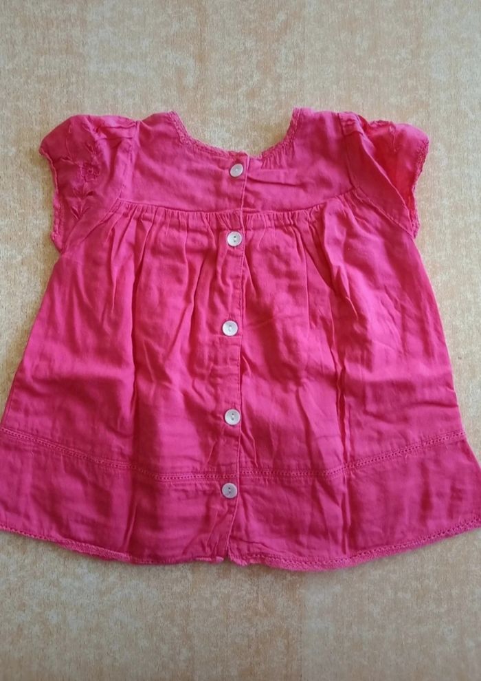 Blouse d'été rose fushia, boutonnée au dos. En très bon état. Taille 12 mois.