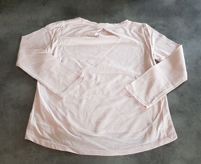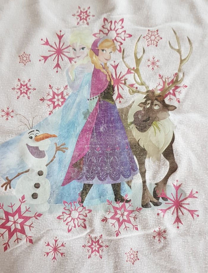 T-shirt manches longues en coton rose avec un petit motif Reine des Neiges sur le devant. À noter une petite tâche légère peu visible sur la Manche voir photo