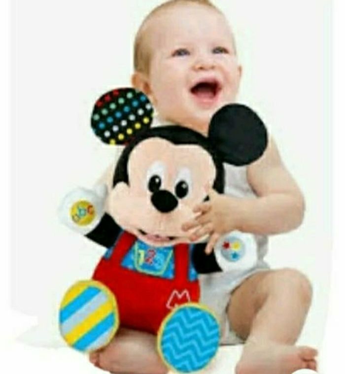 NEUF JAMAIS OUVERT EMBALLAGE ORIGINE DISNEY BABY MICKEY INTERACTIF APREND ET JOUE Chiffres Lettres Couleurs + Comptines - Peluche parlante Version FRANCAISE Age conseillé : de 6 mois à 36 mois Dimentions : 15 x 27 x 39.5 cm Dimensions baby mickey : 39 cm Bébé Mickey, grâce aux 3 touches positionnées sur ses mains et sur son ventre, chantera plein de joyeuses comptines avec la voix originale de Bébé Mickey. Les douces chansons guideront l'enfant dans l'apprentissage des lettres, des chiffres et des couleurs, à apprendre en compagnie du personnage Disney préféré des enfants. Appuies sur ses mains et ventre pour apprendre les lettres, les nombres et les couleurs en chanson.