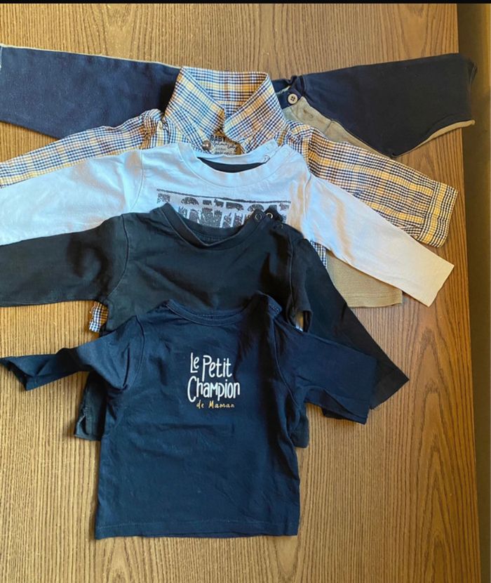 Lot de 4 t shirts manches longues et une chemise Taille 6 mois Détails voir photos