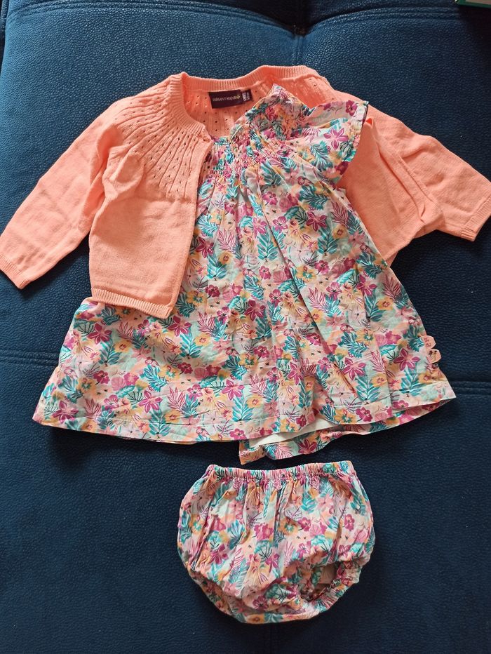 Robe fleuri et gilet assorti sergent major taille 6 mois