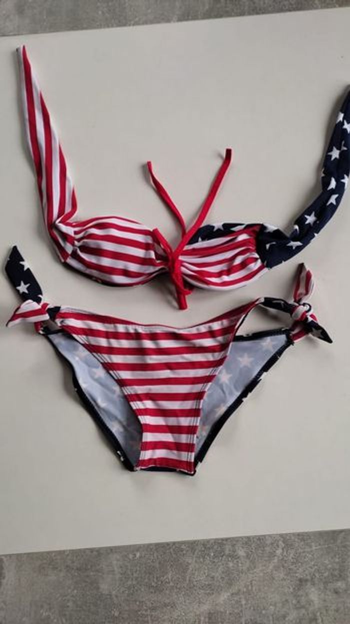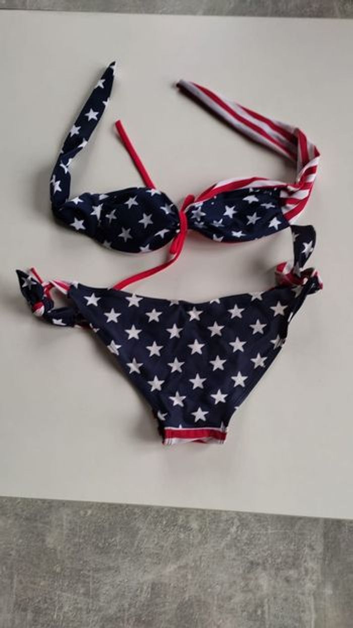 Superbe maillot de bain 2 pièces bleu et rouge ( Le haut se retourne vous pouvez le mettre côté bleu ou côté rouge ) Taille unique , ce règle à la taille , très pratique . Pour fille de 6 à 10 ans . Idéal car on le regle comme on veut . J’ai d’autres maillots , vêtements, chaussures Photos sur demande Lot au choix pour économiser les frais de port