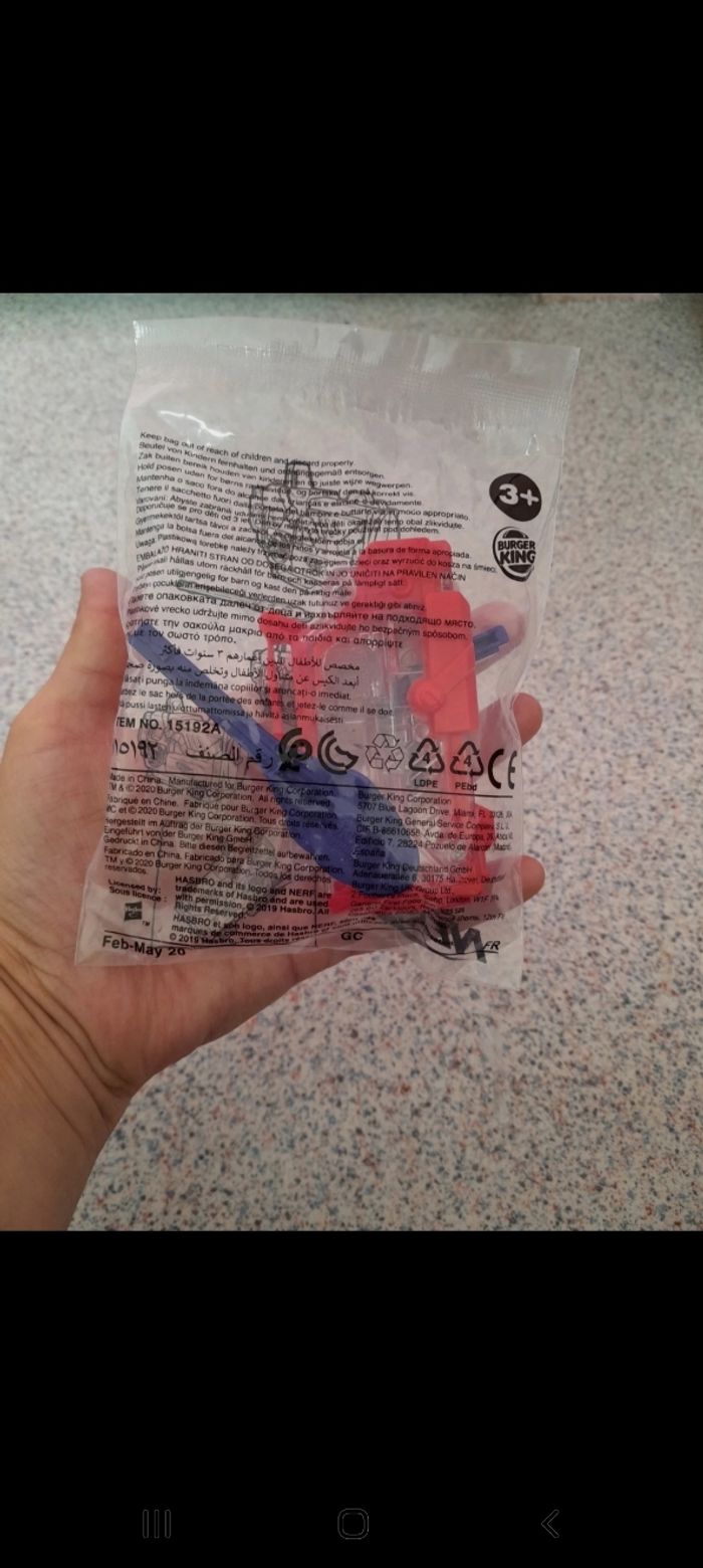 Jouet nerf burger King