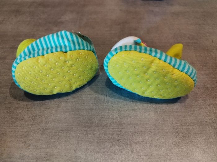 Chaussons multicolore avec grelots à l'intérieur des têtes taille 3M en bon état