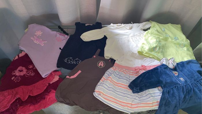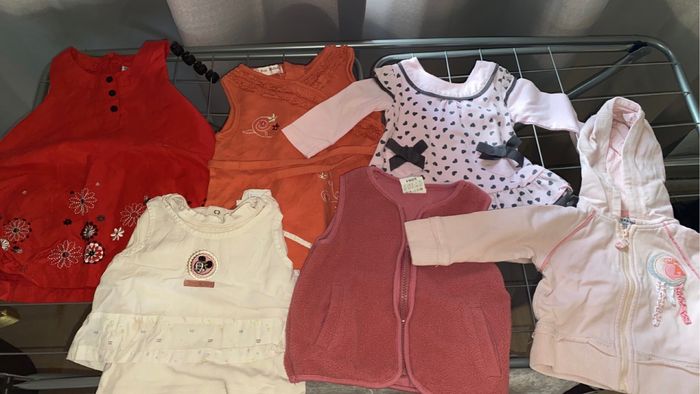 Je vend un lot de vêtement en 6 mois fille en très bon état. Il y a un peu de tout. Legging pantalon robe tee shirt combinaison manteau