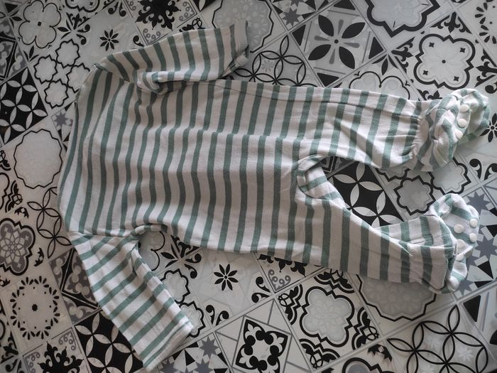 Pyjama 3 mois mixte Kiabi s'ouvre entièrement par devant avec fermeture.