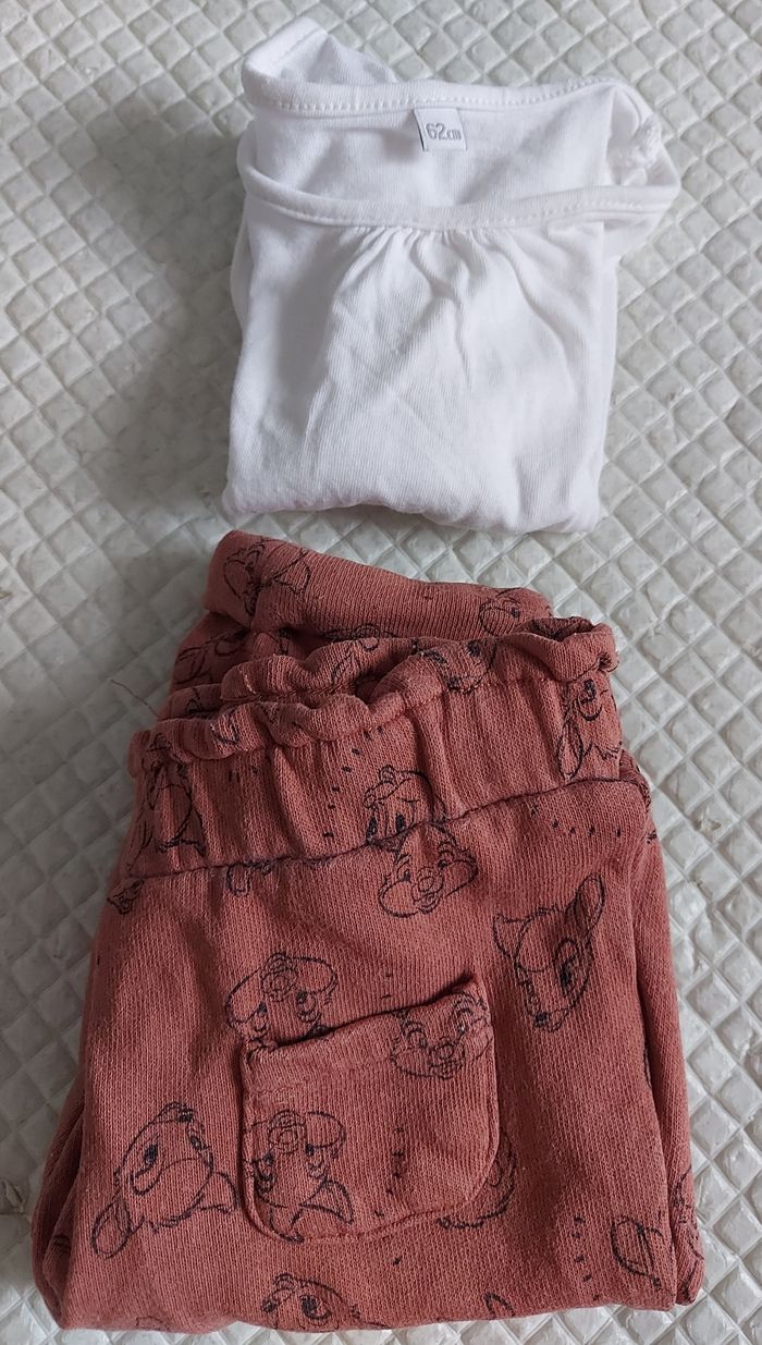 Haut manche longue blanc Bas disney baby 3 mois Très bon etat