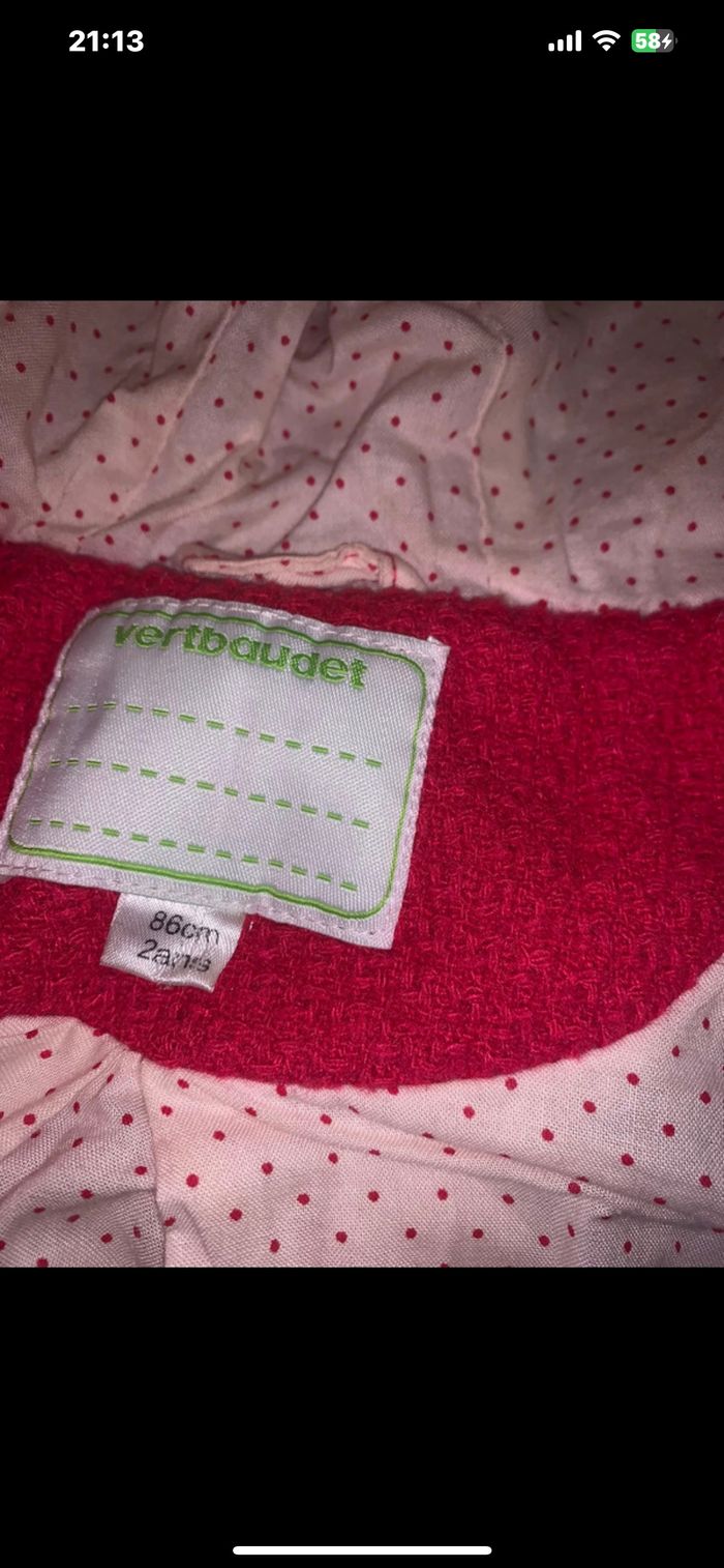 À vendre Manteau fille Taille : 24mois Vert baudet En très bon état
