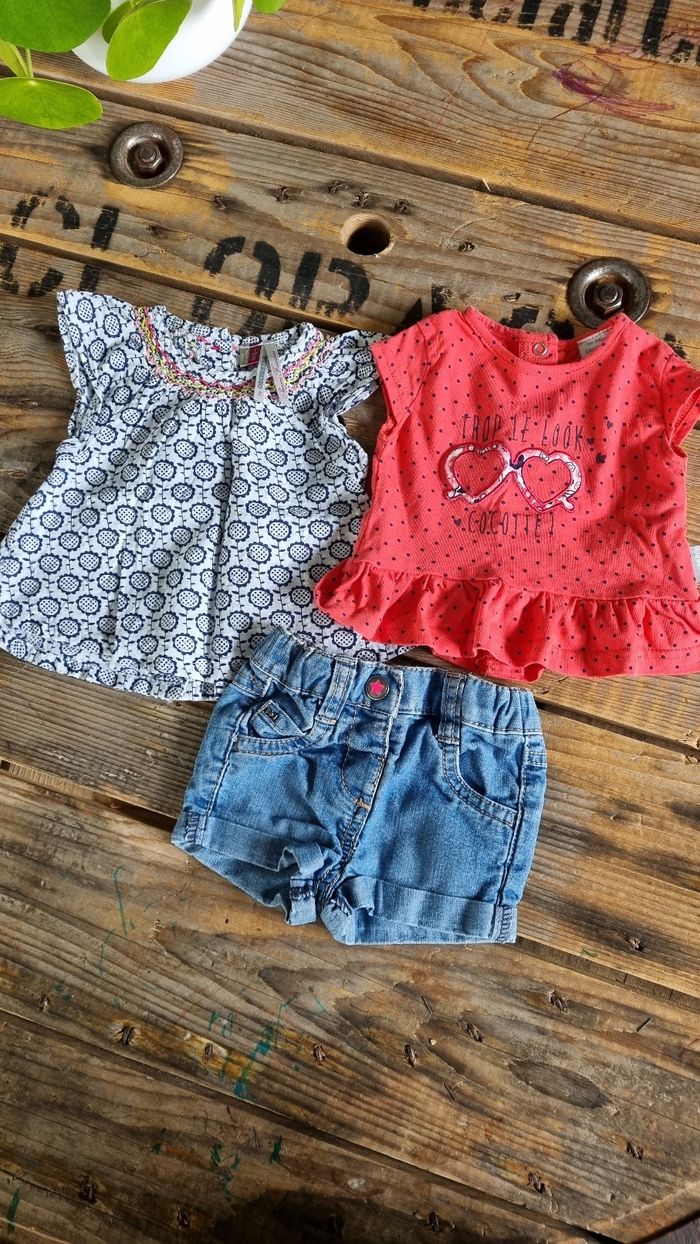 Ensemble été fille 1 mois 2 t shirts 1 short en jean Excellent état