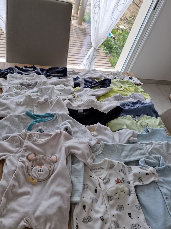 Je vends des vêtements de bébé 50 EUR le lot de 0 mois 25 pyjama 35 body 3 petit pull 2 pantalons 3 Veste Et une gigoteuse
