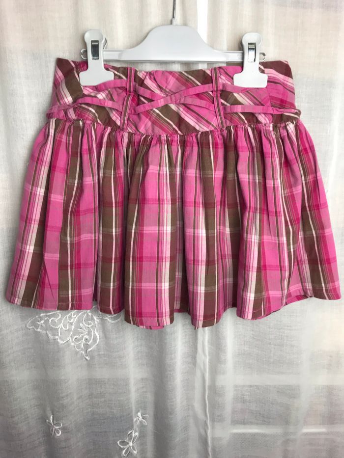 Jupe porte feuille écossaise fuchsia blanc et chocolat réglable à la ceinture 100% coton taille 4 ans Tape à l’œil