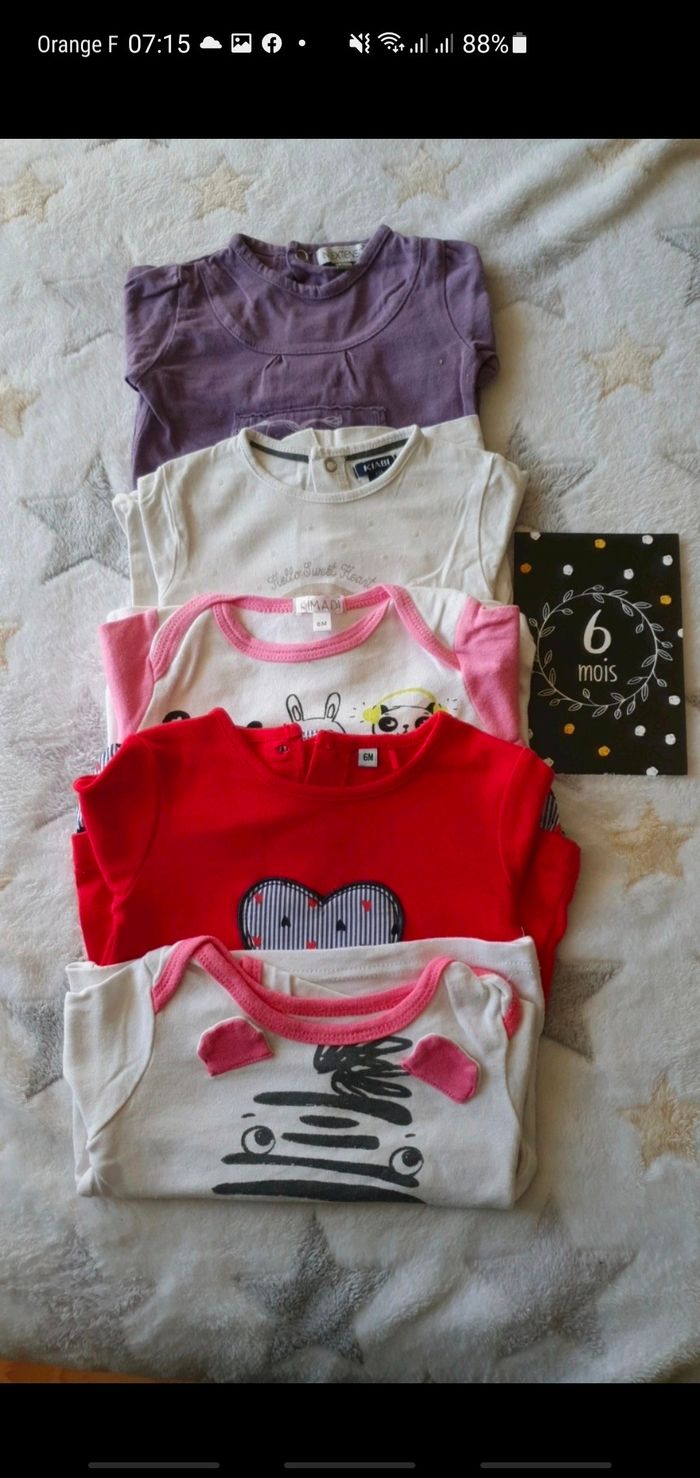 Lot de 5 t shirt manches longues pour fille. Différentes marques et colories. Taille 6 mois
