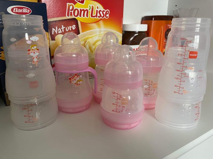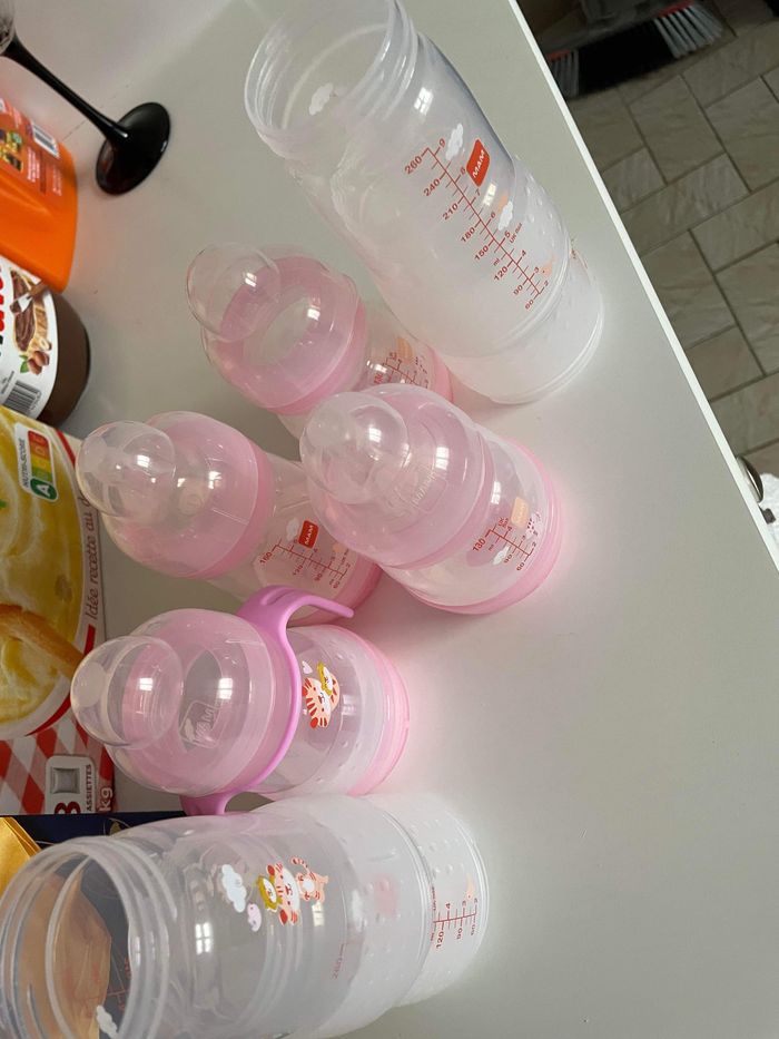 Biberon + la suce. Ils sont impeccables aucun défaut les tétines dedans son de vitesse 0 et 1 il est complet j’ai juste plus la boîte d’origine mais tout est nickel ☺️ je l’es ai acheter sur Amazon à 45,91€. Vous s’y retrouverez 4 biberon de 260ml, 2 biberon de 160ml, 2 biberon de 130ml, 1 suce, 1 tétine pour faire comme un verre et avec les poignées pour bébé et des tétines