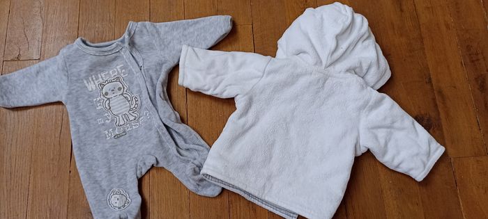 Manteau de marque tex baby en excellent état et un pyjama in extenso en bon état car le lettrage commence à partir.