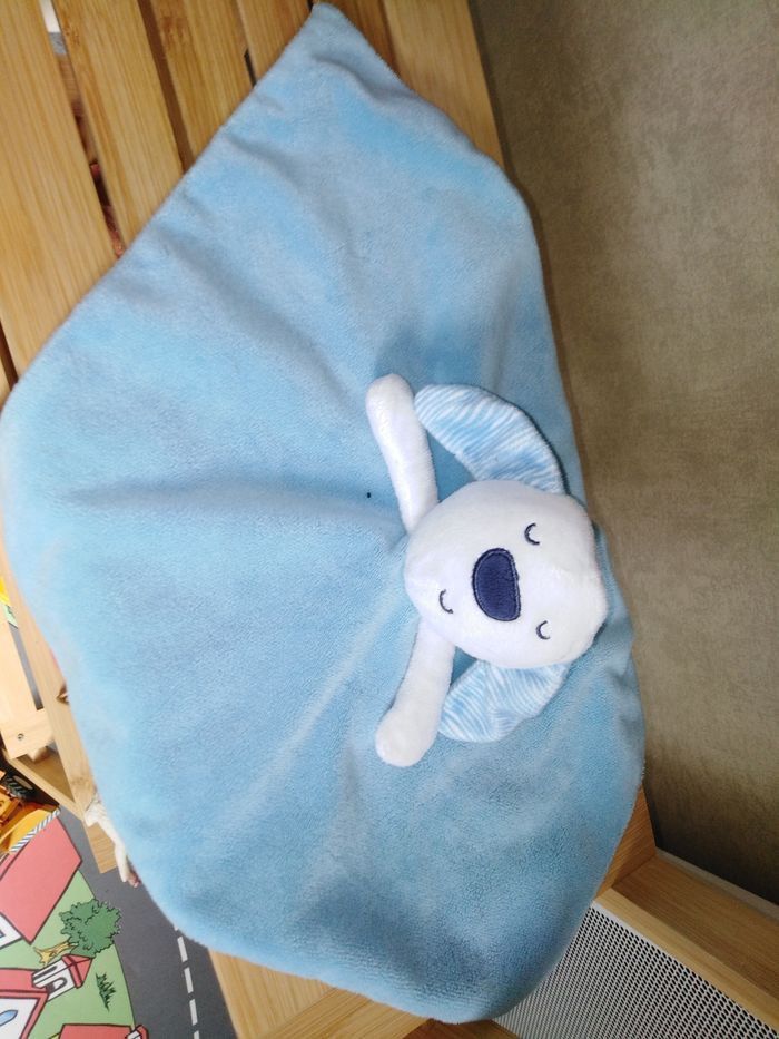 Très beau doudou forme mouchoir, 1 étiquette présente, pas de marque. Bon etat général Beaucoup d'autres doudous bébé, livres, puzzles, jeux, jouets en bois, vintage etc... Également à vendre ds mon dressing et réductions activées.