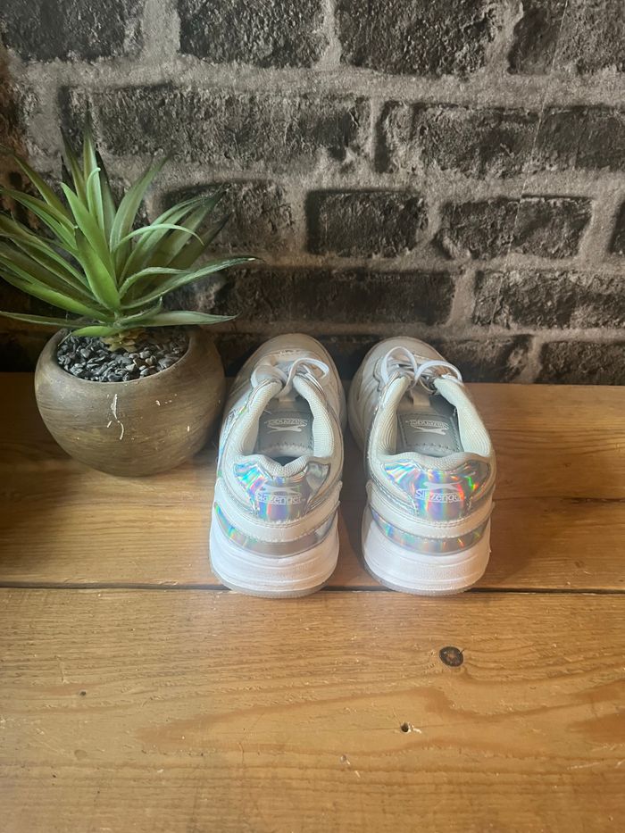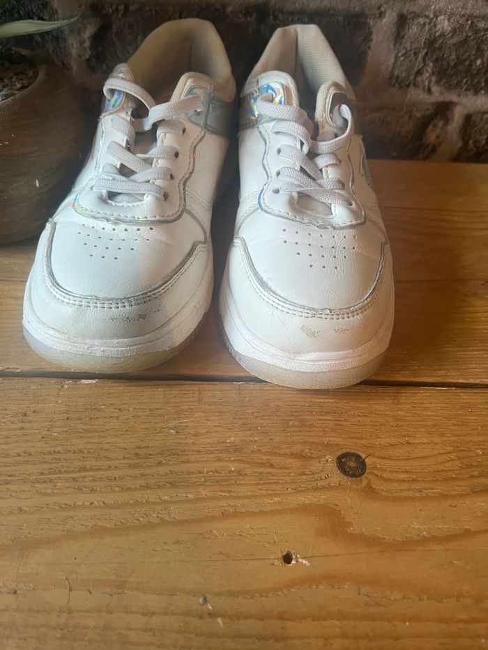 Bonjour je vend une paire de baskets fille blanche et argent. Un peu abîmé sur le devant.