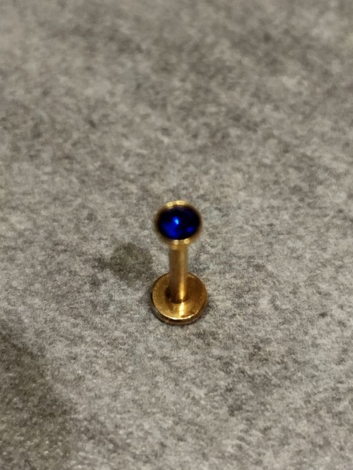 Piercing labret doré avec strass bleu neuf en acier chirurgical