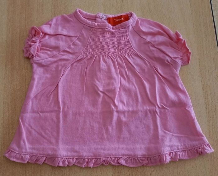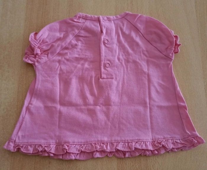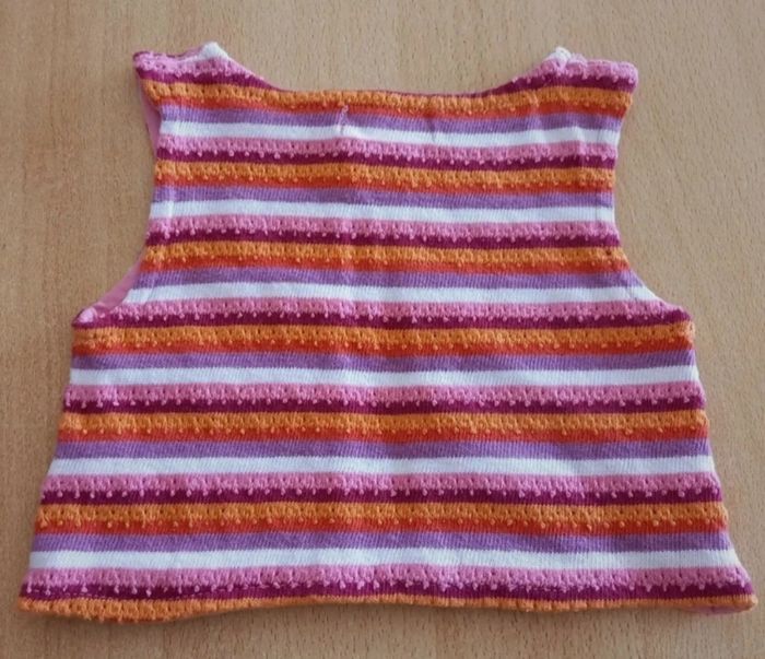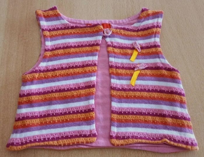Ensemble tee-shirt rose et boléro rayé. En très bon état. Taille 3 mois.