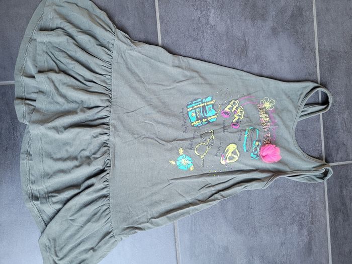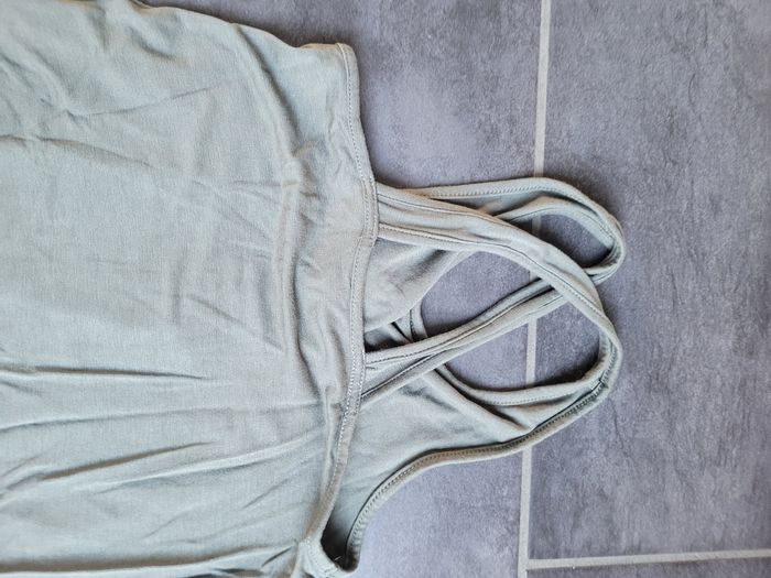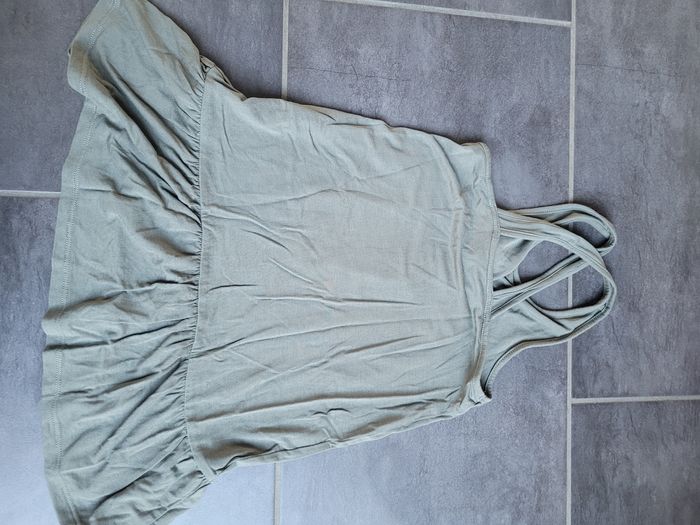 Tunique verte kaki Les bretelles se croisent derrière Volant sur le bas de la tunique En très bon état