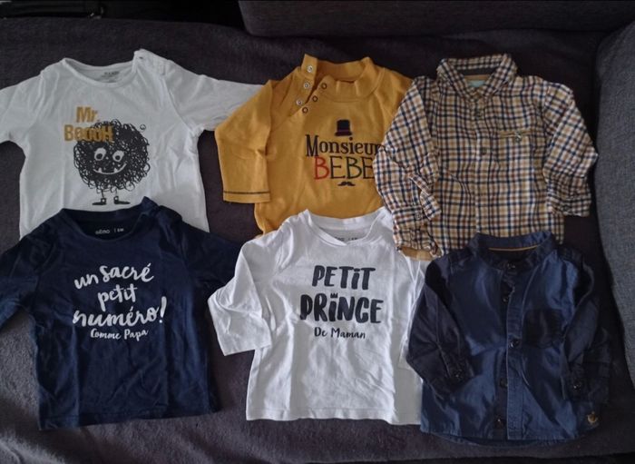 - Mr Boooh < Kiabi - Un sacré petit numéro comme papa < Gémo - Monsieur bébé < Tape à l'oeil - Petit prince de maman < Gémo - Chemise a carreaux < Obaibi - Chemise bleu < Tape à l'oeil Taille 6 mois