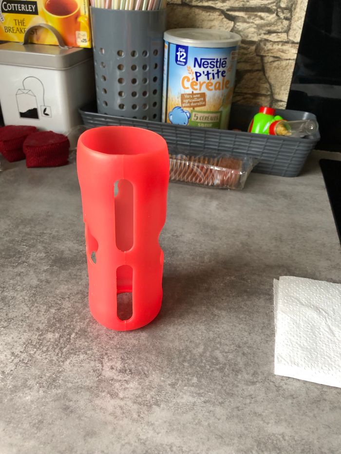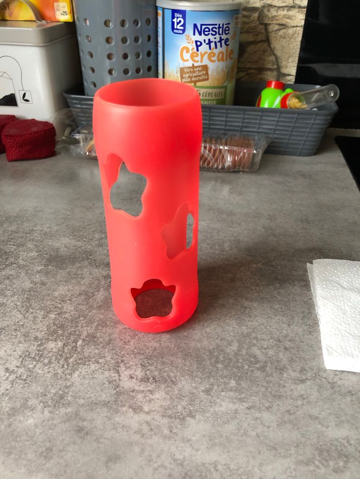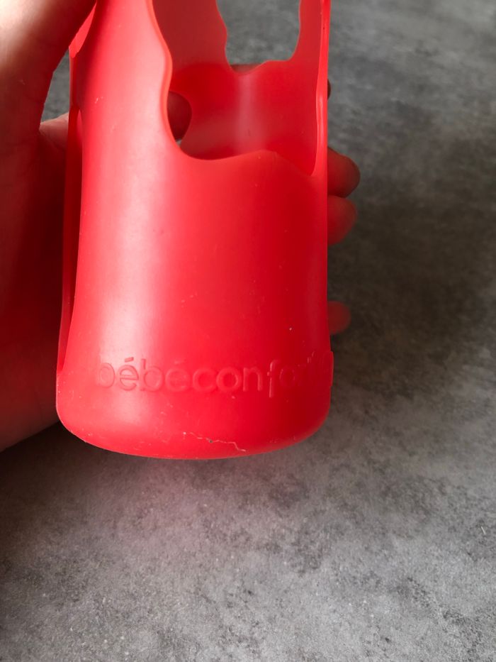 Idéal pour l’es biberon en verre. Comme sa il ne casse pas si jamais il tombe bébé confort rouge