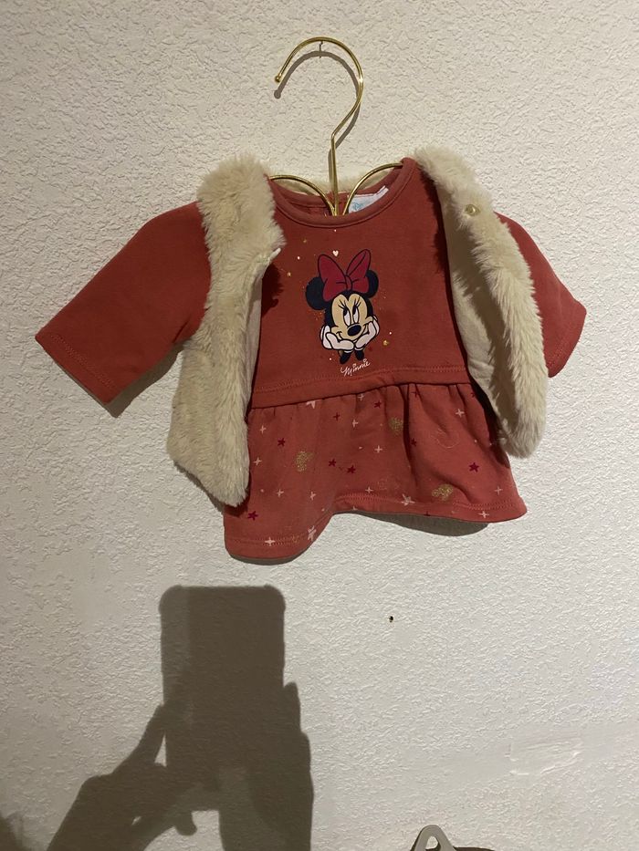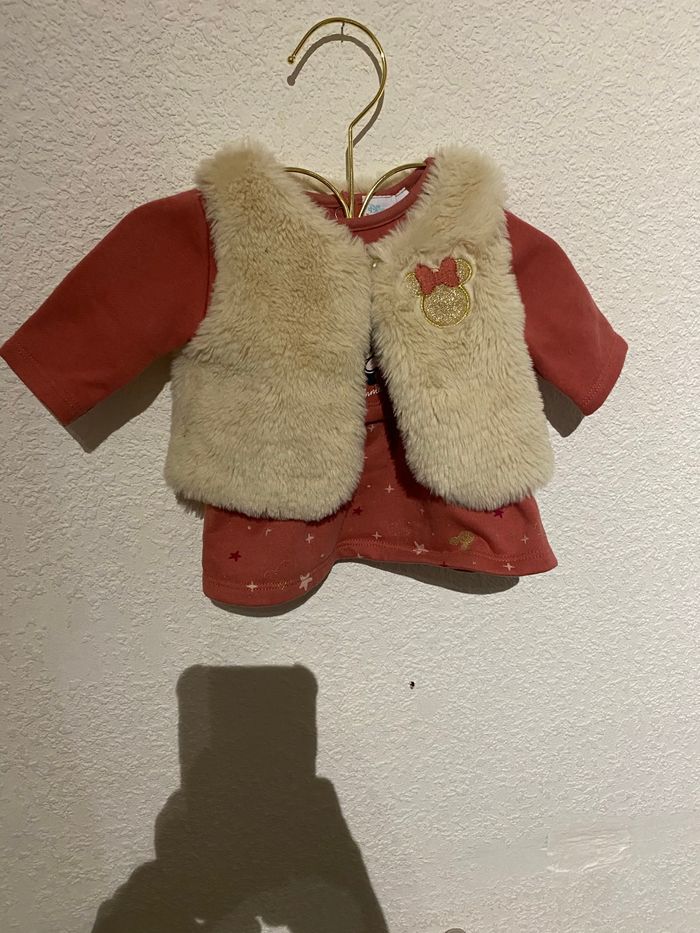 Petite robe Minnie avec gilet en fourrure en bon état. Idéale pour le printemps.