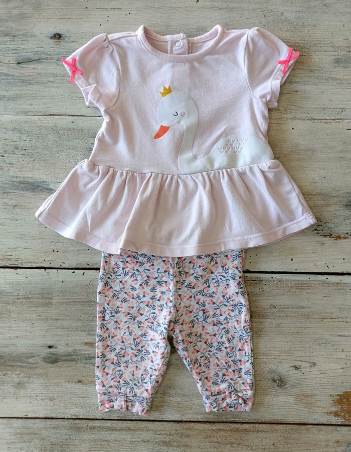 Ensemble taille 3 mois marque Orchestra composé d'un legging fleuri et un tee-shirt manches courtes cygne. Le tout en très bon état.