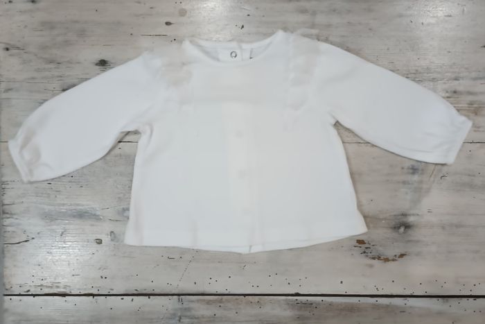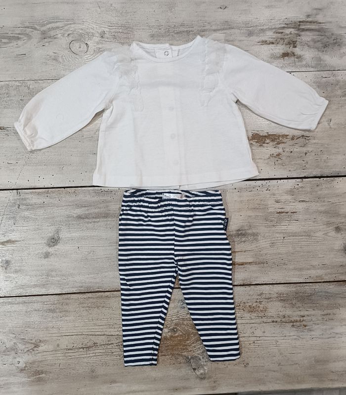 Ensemble 6 mois composé d'un top manches longues blanc marque Verbaudet et d'un legging couleur marine, marque mes petits cailloux. Très bon état.