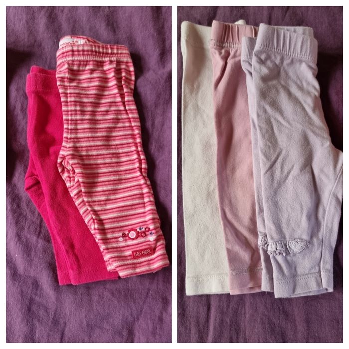 Lot 10 leggings En fonction de la marque la taille différe sur les leggings... En fonction de ma fille j ai sélectionné Taille plutôt 3 mois Marque : orchestra, kiabi, in extenso, décathlon, tex baby, la Cie des petits, kimbaloo Bonne état général, aucun trou/tache
