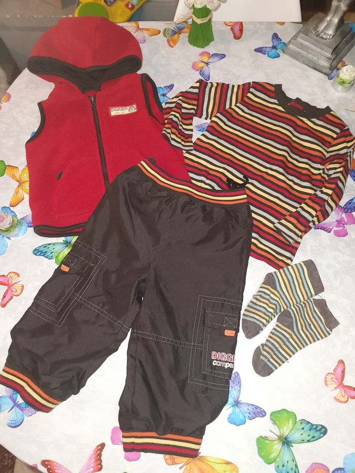 Chaussettes t-shirt pantalon et doudoune sans manche polaire 18 mois