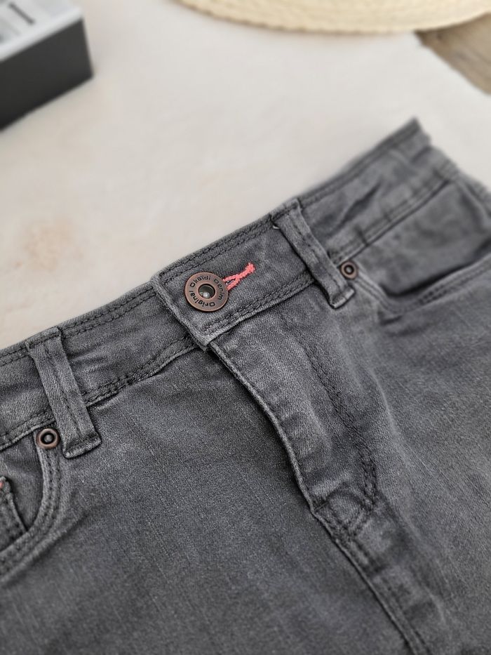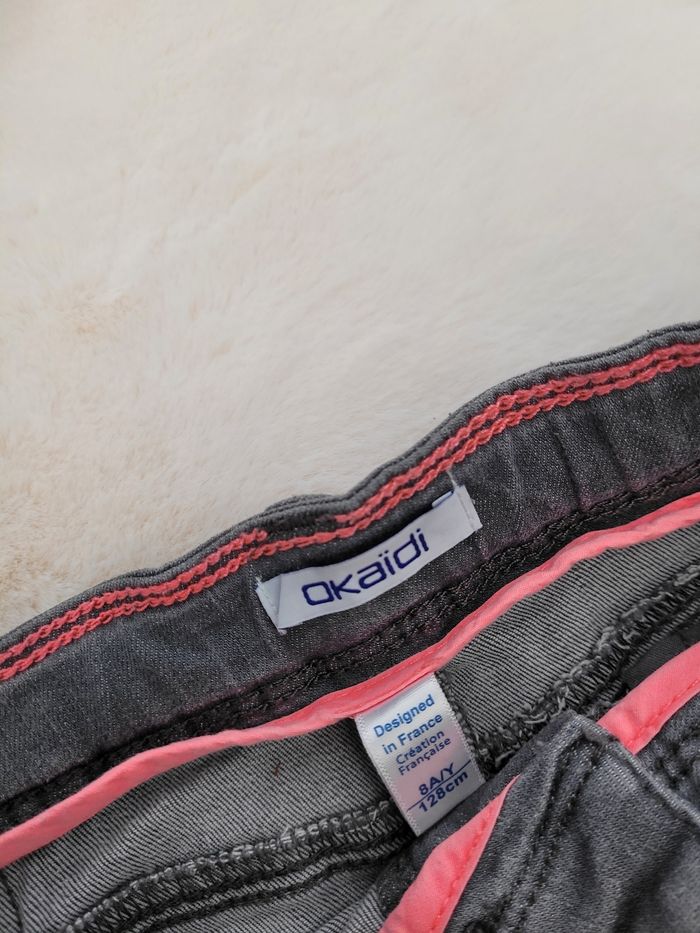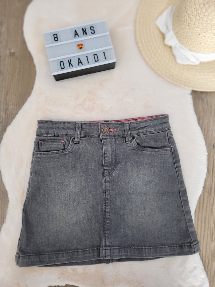jupe en jeans okaidi 8 ans, grise. fermeture pression et élastique d'ajustement