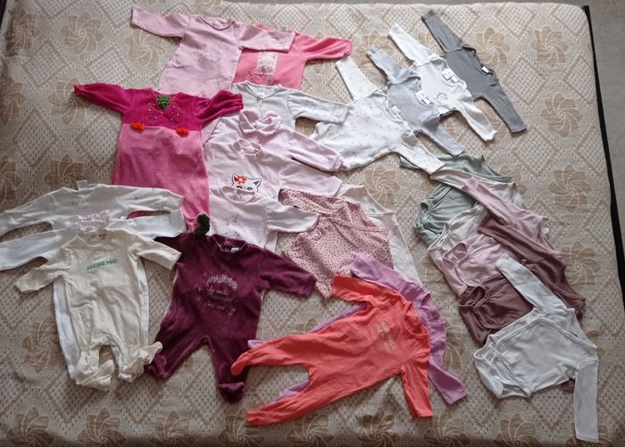3 pyjamas fin Kiabi 1 pyjama fin Zara 9 pyjamas hiver de marque différentes 4 bodys Zara 5 body H &M 2 cache coeur H&M