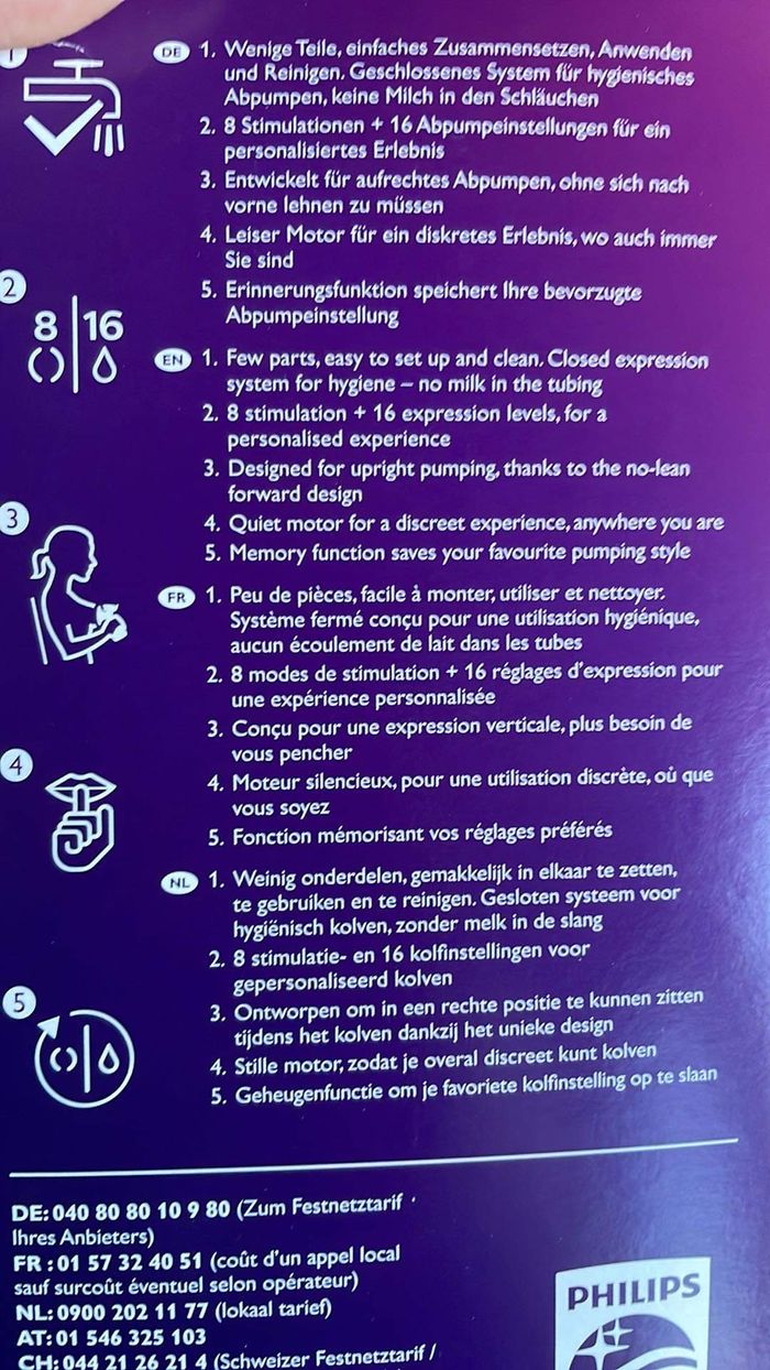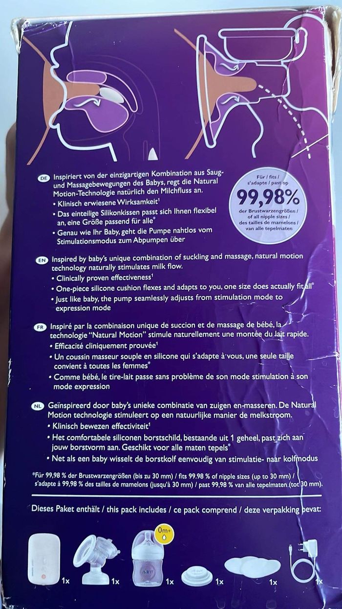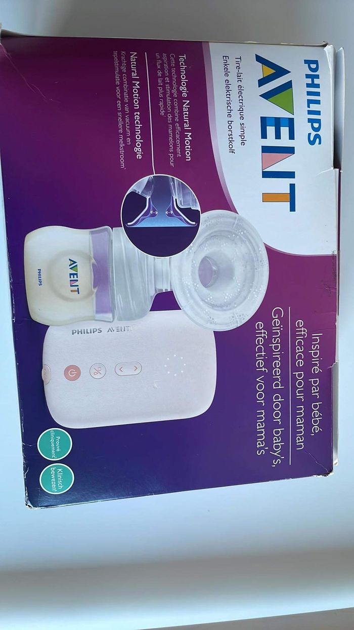 Tire lait électrique avent, très peu servi, Plusieurs vitesses, fonctionne très bien, la boîte est légèrement abîmée mais le tire lait est en parfait état . Idéal pour voyager, prend peu de place dans le sac à langer. Acheter neuf 142€